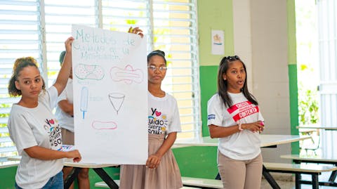 Samen met scholen, overheden, zorgmedewerkers, media en andere partners werkt Plan International in verschillende landen aan betere voorlichting over menstruatie op scholen, voor zowel jongens als meisjes. We zetten hierbij toneelvoorstellingen en de media in om menstruatietaboes te doorbreken. Ook delen we herbruikbaar maandverband uit en zorgen we voor aparte en vrouwvriendelijke toiletten. Bovendien lobbyen we ervoor dat menstruatie meer prioriteit krijgt in beleid.